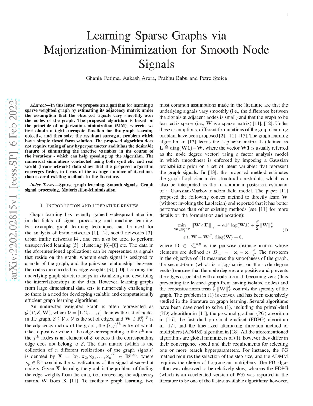 Learning Sparse Graphs via Majorization-Minimization for Smooth Node