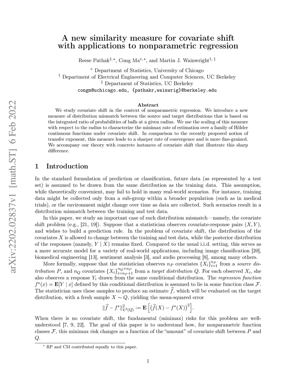 We study covariate shift in the context of nonparametric regression. We introduce a new measure of distribution mismatch between the source and target distributions that is based on the integrated ratio of probabilities of balls at a given radius. We use the scaling of this measure with respect to the radius to characterize the minimax rate of estimation over a family of H\"older continuous functions under covariate shift. In comparison to the recently proposed notion of transfer exponent, this measure leads to a sharper rate of convergence and is more fine-grained. We accompany our theory with concrete instances of covariate shift that illustrate this sharp difference.