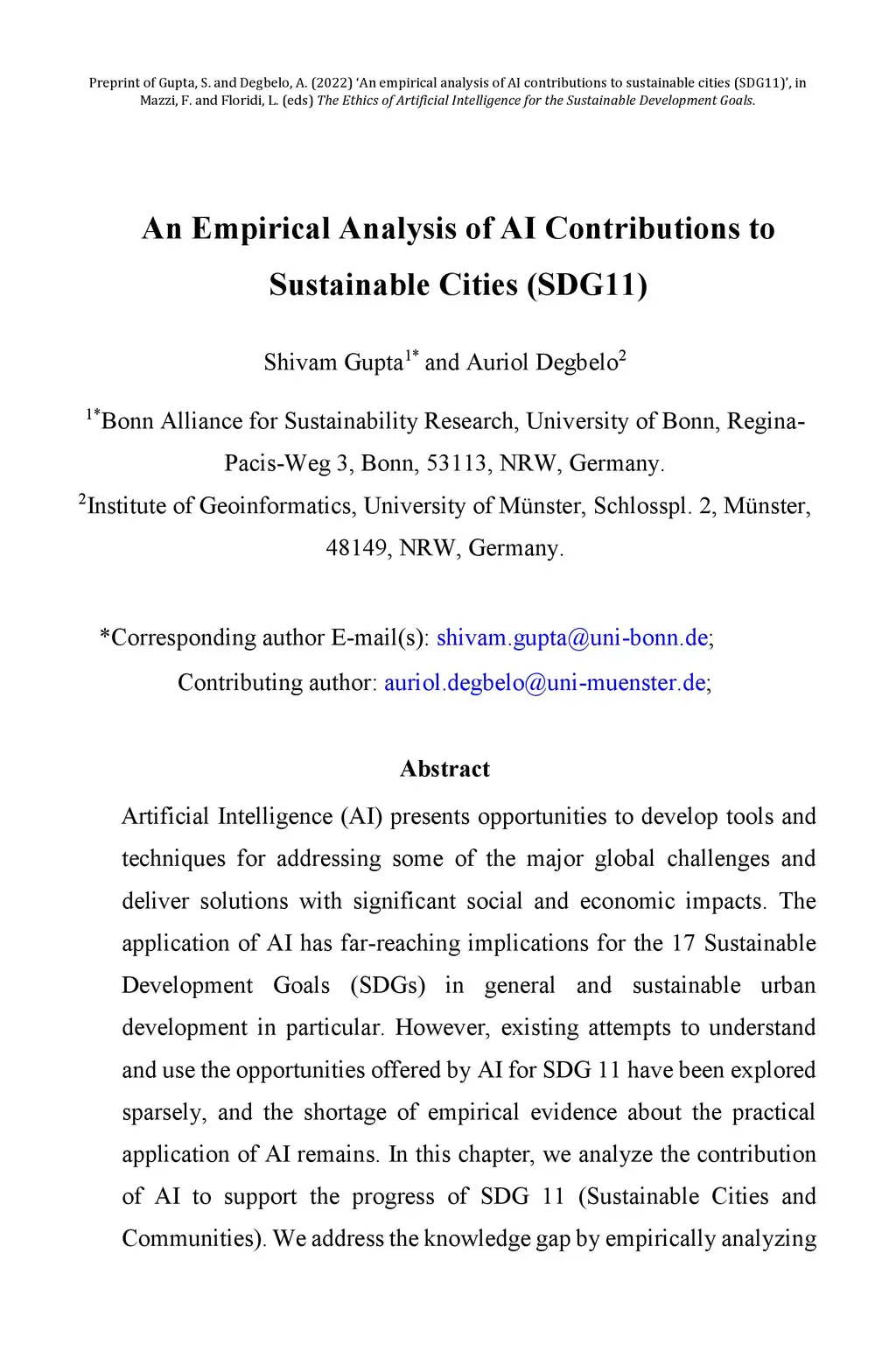An Empirical Analysis of AI Contributions to Sustainable Cities (SDG11)