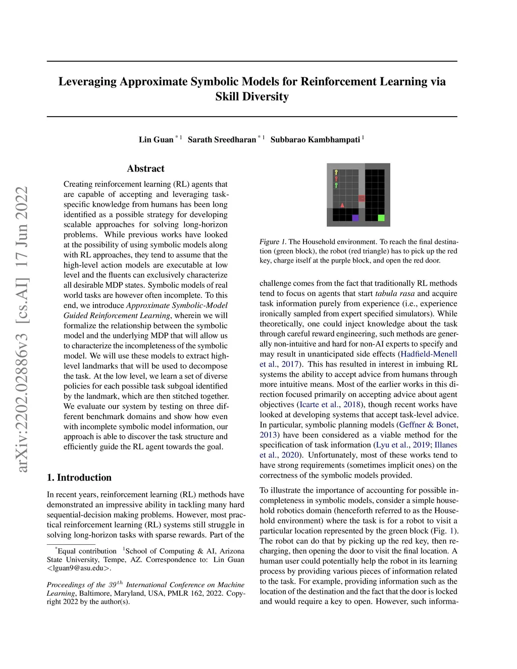 Creating reinforcement learning (RL) agents that are capable of accepting and leveraging task-specific knowledge from humans has been long identified as a possible strategy for developing scalable approaches for solving long-horizon problems. While previous works have looked at the possibility of using symbolic models along with RL approaches, they tend to assume that the high-level action models are executable at low level and the fluents can exclusively characterize all desirable MDP states. Symbolic models of real world tasks are however often incomplete. To this end, we introduce Approximate Symbolic-Model Guided Reinforcement Learning, wherein we will formalize the relationship between the symbolic model and the underlying MDP that will allow us to characterize the incompleteness of the symbolic model. We will use these models to extract high-level landmarks that will be used to decompose the task. At the low level, we learn a set of diverse policies for each possible task subgoal identified by the landmark, which are then stitched together. We evaluate our system by testing on three different benchmark domains and show how even with incomplete symbolic model information, our approach is able to discover the task structure and efficiently guide the RL agent towards the goal.