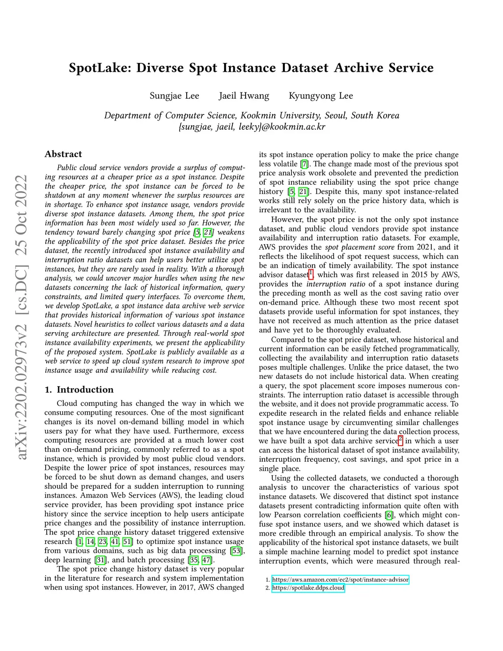 SpotLake: Diverse Spot Instance Dataset Archive Service