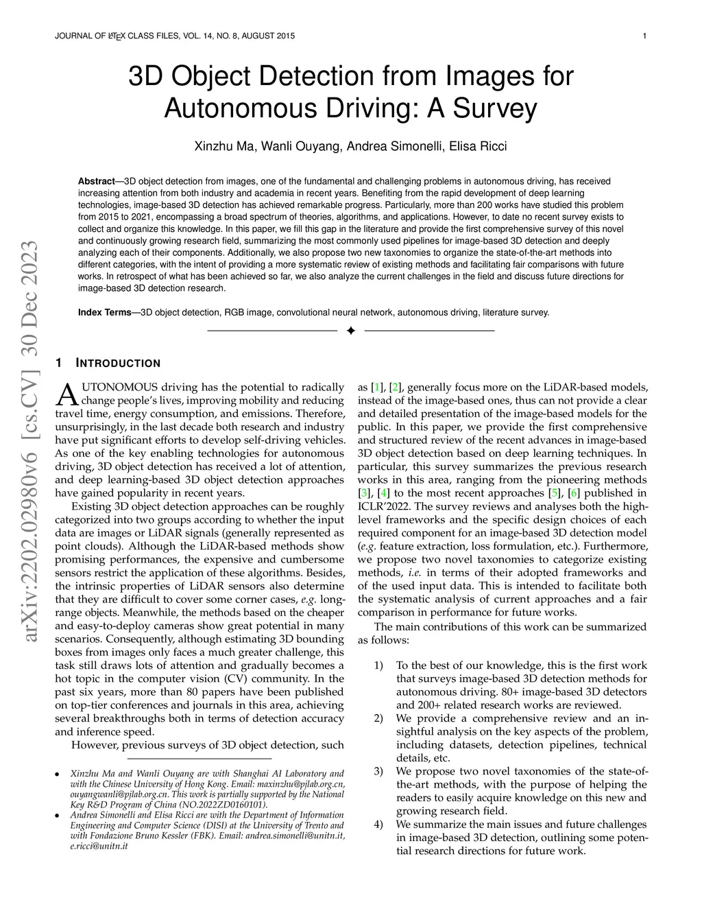 3D Object Detection from Images for Autonomous Driving: A Survey