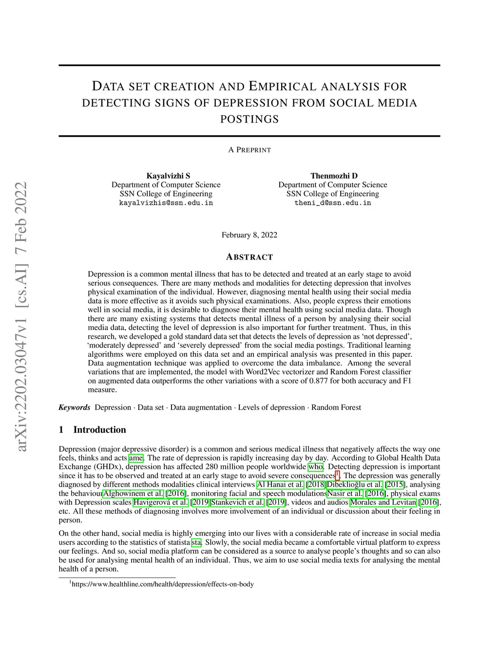 Data set creation and empirical analysis for detecting signs of