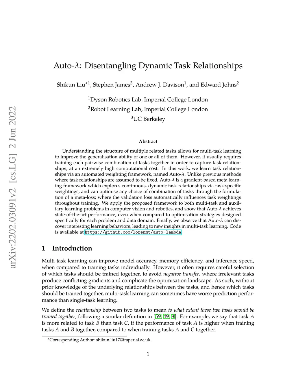 Auto-Lambda: Disentangling Dynamic Task Relationships