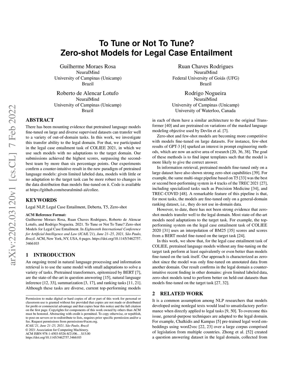 To Tune or Not To Tune? Zero-shot Models for Legal Case Entailment