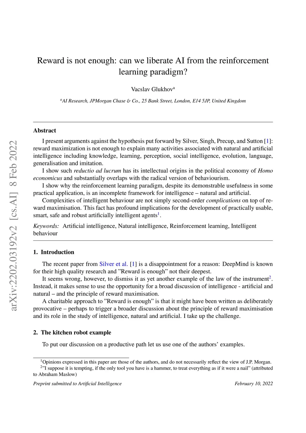 Reward is not enough: can we liberate AI from the reinforcement learning paradigm?