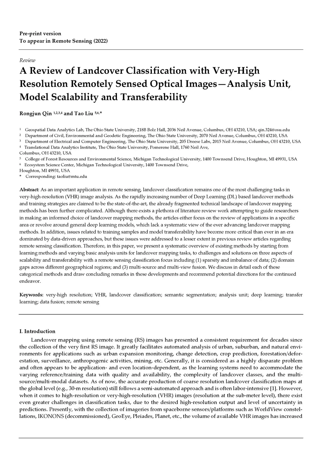 A Review of Landcover Classification with Very-High Resolution Remotely