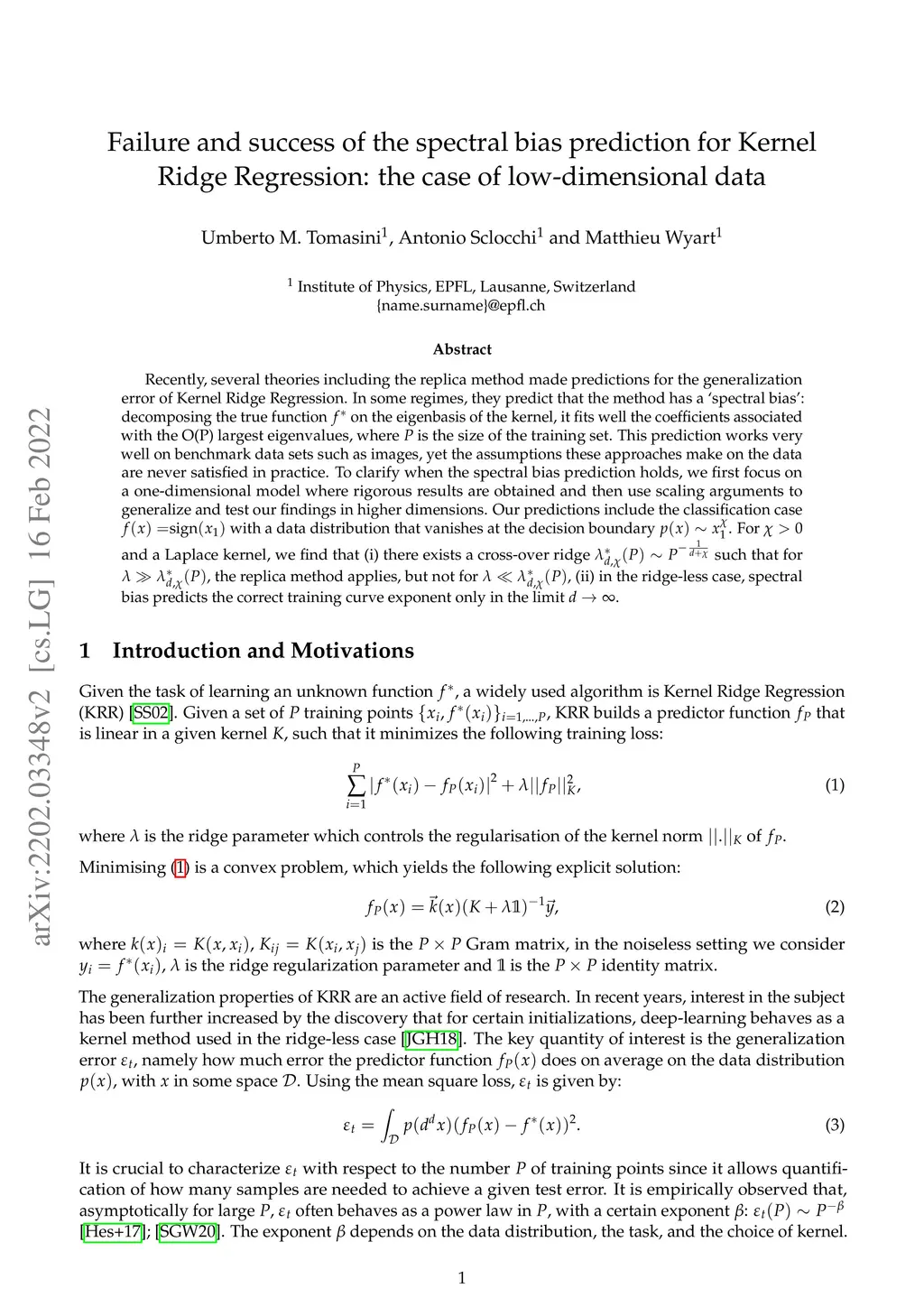 Recently, several theories including the replica method made predictions for the generalization error of Kernel Ridge Regression. In some regimes, they predict that the method has a `spectral bias': decomposing the true function on the eigenbasis of the kernel, it fits well the coefficients associated with the O(P) largest eigenvalues, where is the size of the training set. This prediction works very well on benchmark data sets such as images, yet the assumptions these approaches make on the data are never satisfied in practice. To clarify when the spectral bias prediction holds, we first focus on a one-dimensional model where rigorous results are obtained and then use scaling arguments to generalize and test our findings in higher dimensions. Our predictions include the classification case sign with a data distribution that vanishes at the decision boundary . For and a Laplace kernel, we find that (i) there exists a cross-over ridge such that for , the replica method applies, but not for , (ii) in the ridge-less case, spectral bias predicts the correct training curve exponent only in the limit .