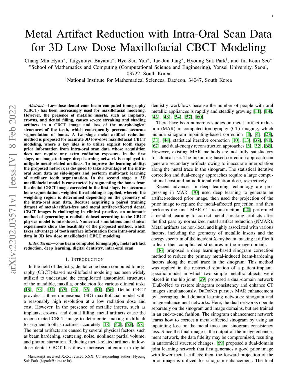 Metal Artifact Reduction with Intra-Oral Scan Data for 3D Low Dose