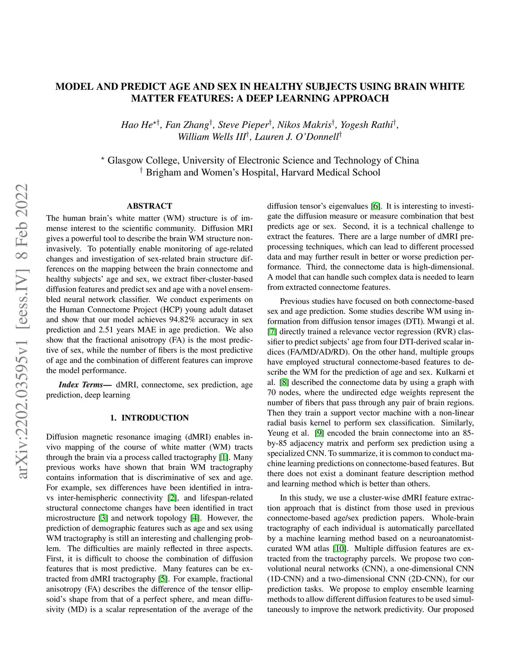 Model and predict age and sex in healthy subjects using brain white