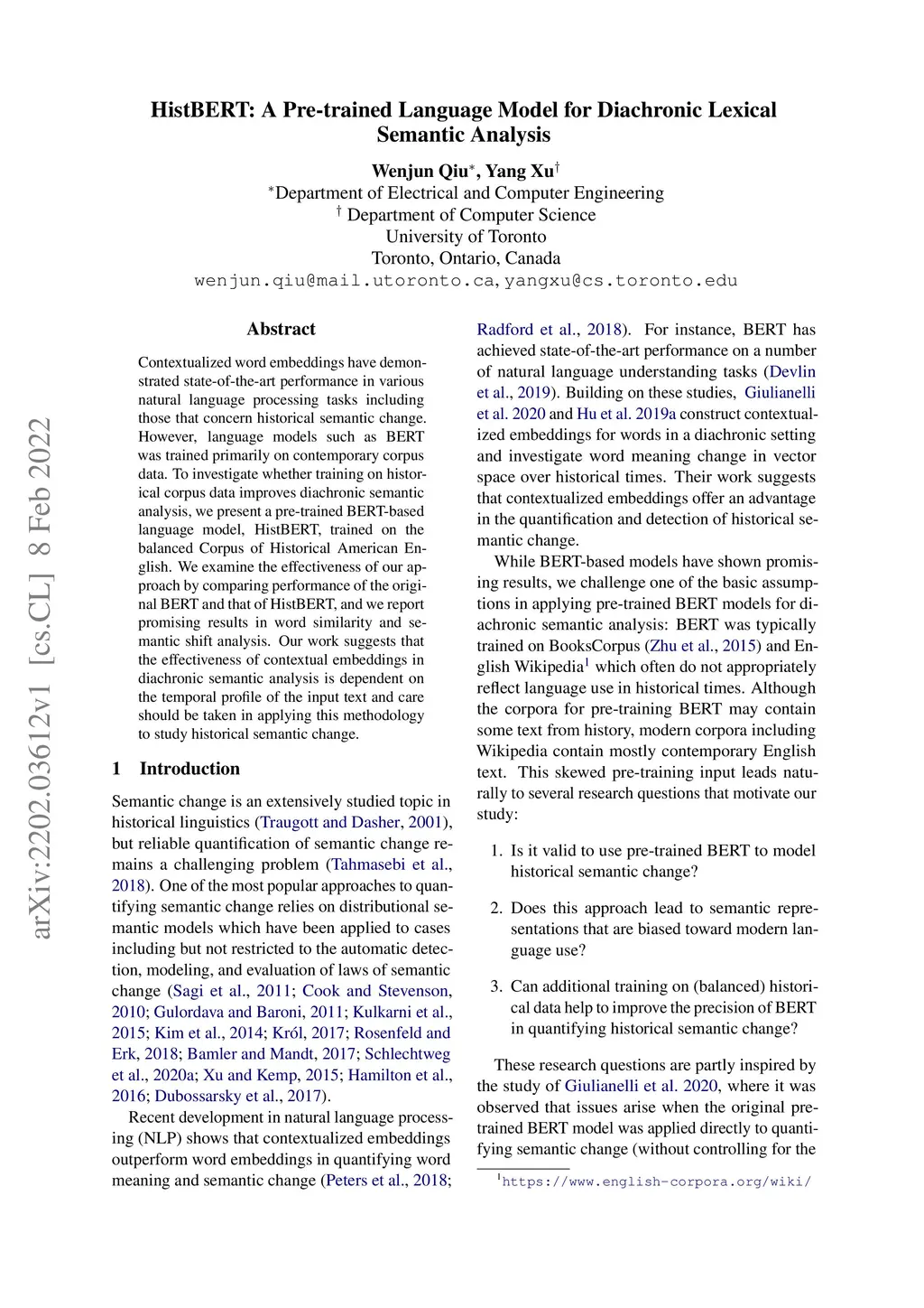 HistBERT: A Pre-trained Language Model for Diachronic Lexical Semantic