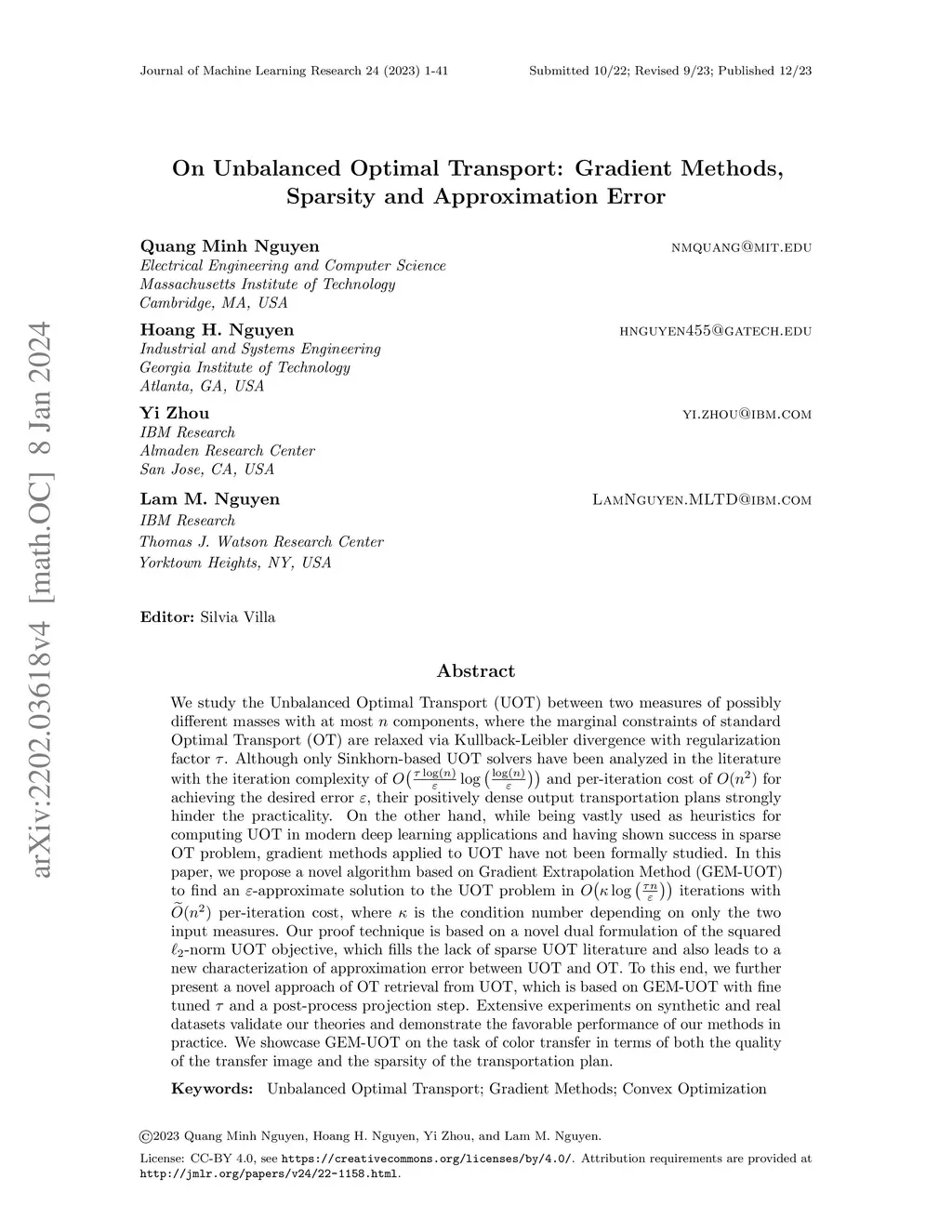 We study the Unbalanced Optimal Transport (UOT) between two measures of possibly different masses with at most components, where the marginal constraints of standard Optimal Transport (OT) are relaxed via Kullback-Leibler divergence with regularization factor . Although only Sinkhorn-based UOT solvers have been analyzed in the literature with the iteration complexity of and per-iteration cost of for achieving the desired error , their positively dense output transportation plans strongly hinder the practicality. On the other hand, while being vastly used as heuristics for computing UOT in modern deep learning applications and having shown success in sparse OT problem, gradient methods applied to UOT have not been formally studied. In this paper, we propose a novel algorithm based on Gradient Extrapolation Method (GEM-UOT) to find an -approximate solution to the UOT problem in iterations with per-iteration cost, where is the condition number depending on only the two input measures. Our proof technique is based on a novel dual formulation of the squared -norm UOT objective, which fills the lack of sparse UOT literature and also leads to a new characterization of approximation error between UOT and OT. To this end, we further present a novel approach of OT retrieval from UOT, which is based on GEM-UOT with fine tuned and a post-process projection step. Extensive experiments on synthetic and real datasets validate our theories and demonstrate the favorable performance of our methods in practice.
