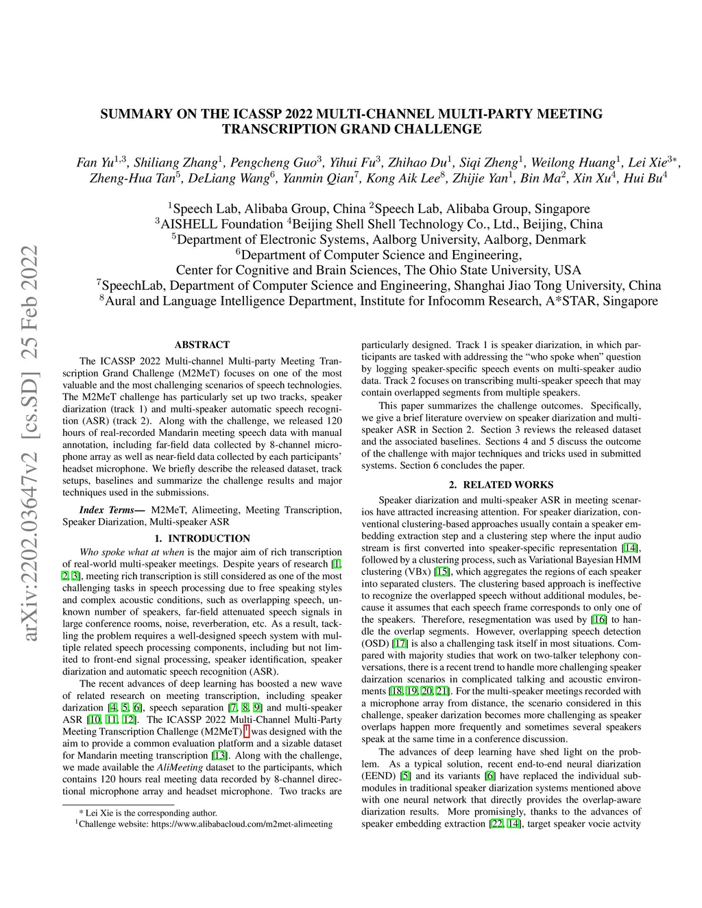 Summary On The ICASSP 2022 Multi-Channel Multi-Party Meeting