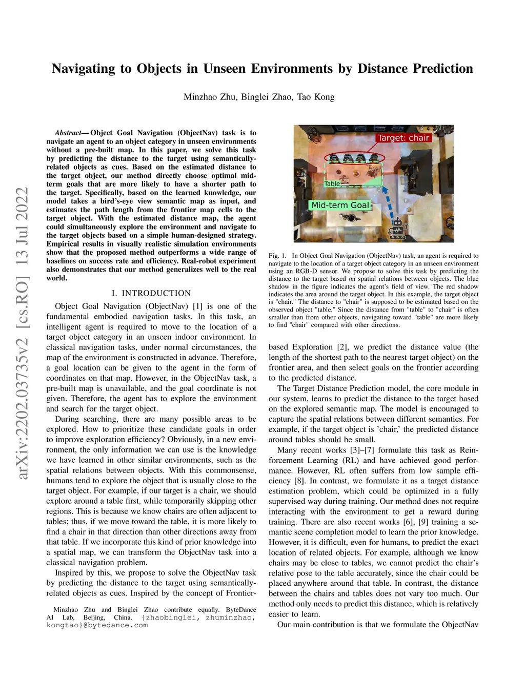 Navigating to Objects in Unseen Environments by Distance Prediction