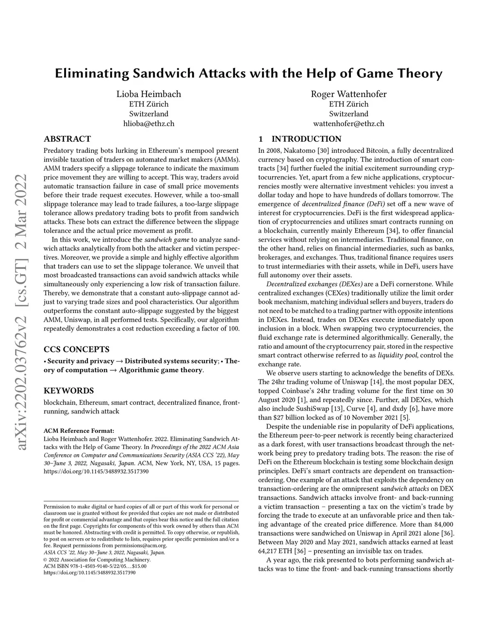 Eliminating Sandwich Attacks with the Help of Game Theory