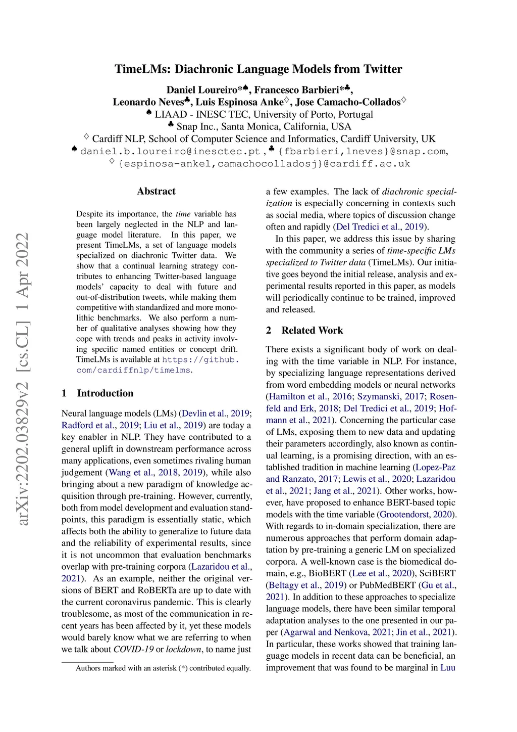 TimeLMs: Diachronic Language Models from Twitter