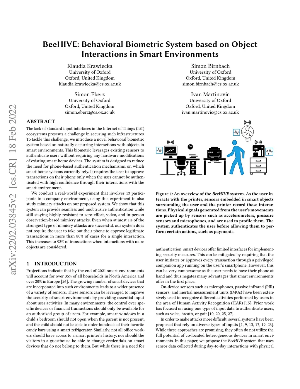 BeeHIVE: Behavioral Biometric System based on Object Interactions in