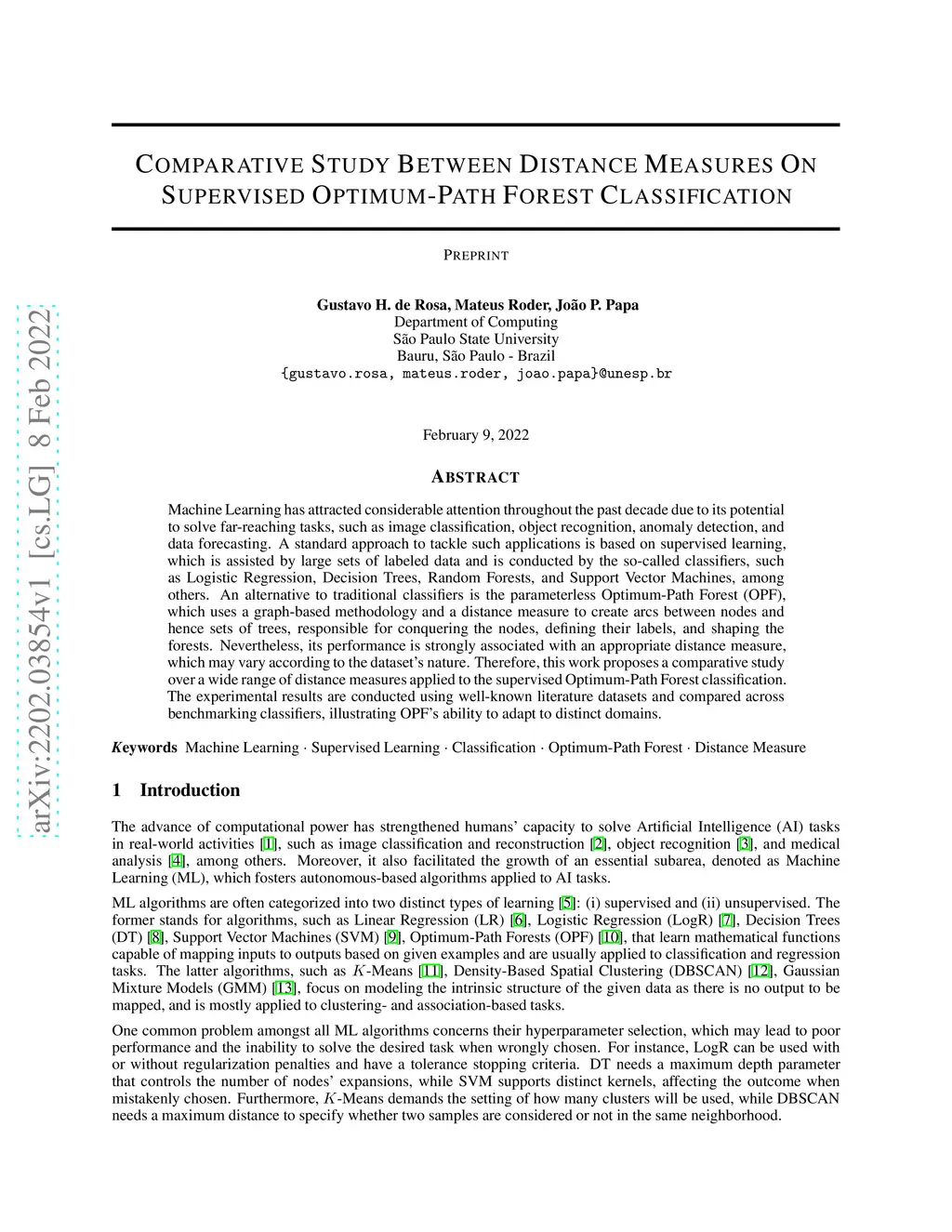 Comparative Study Between Distance Measures On Supervised Optimum-Path