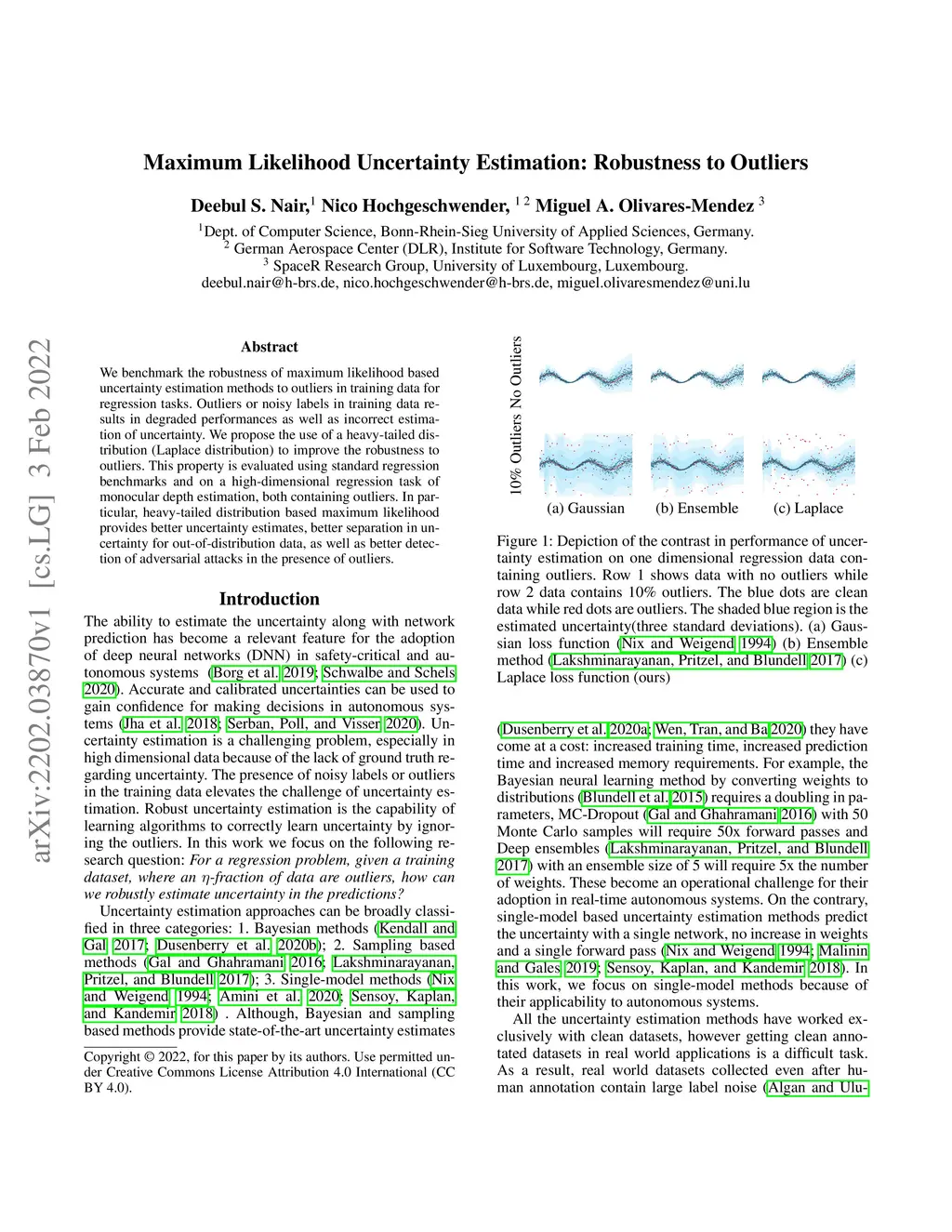 Maximum Likelihood Uncertainty Estimation: Robustness to Outliers