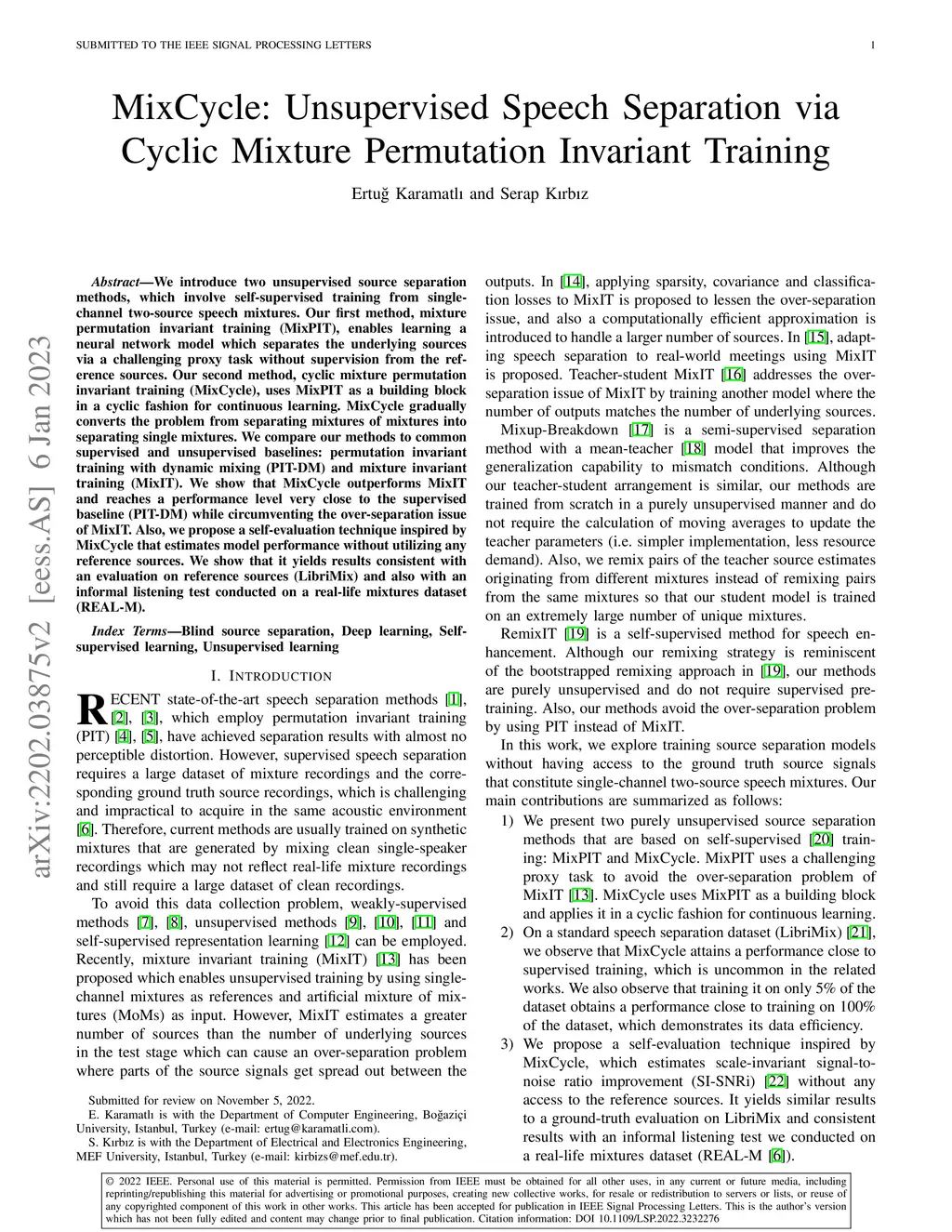 MixCycle: Unsupervised Speech Separation via Cyclic Mixture Permutation