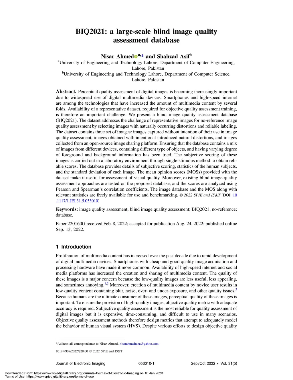 BIQ2021: A Large-Scale Blind Image Quality Assessment Database