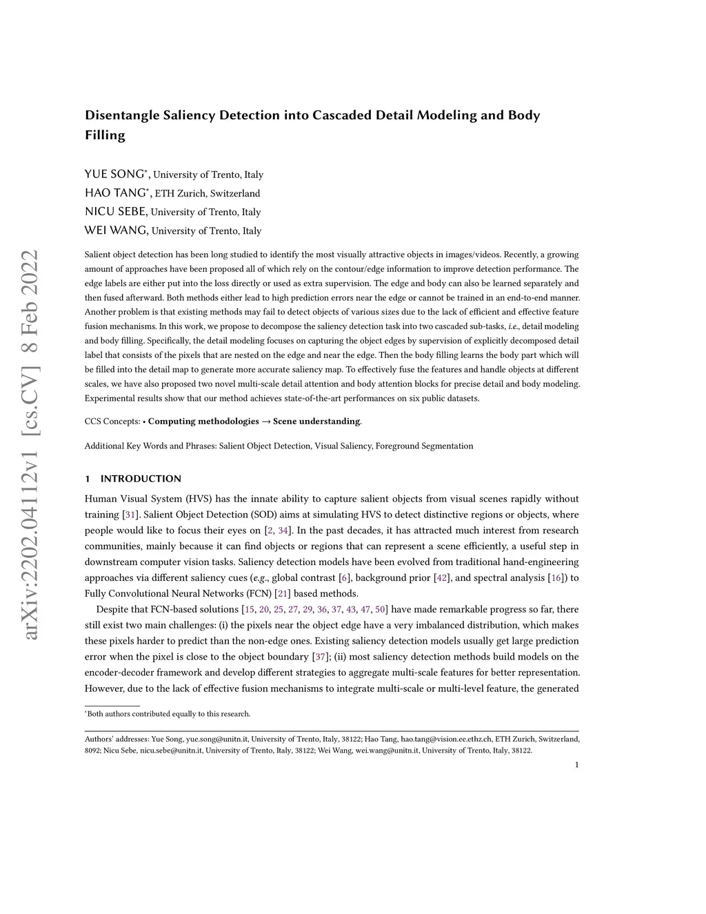 Disentangle Saliency Detection into Cascaded Detail Modeling and Body
