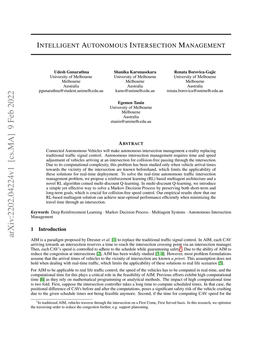 Intelligent Autonomous Intersection Management