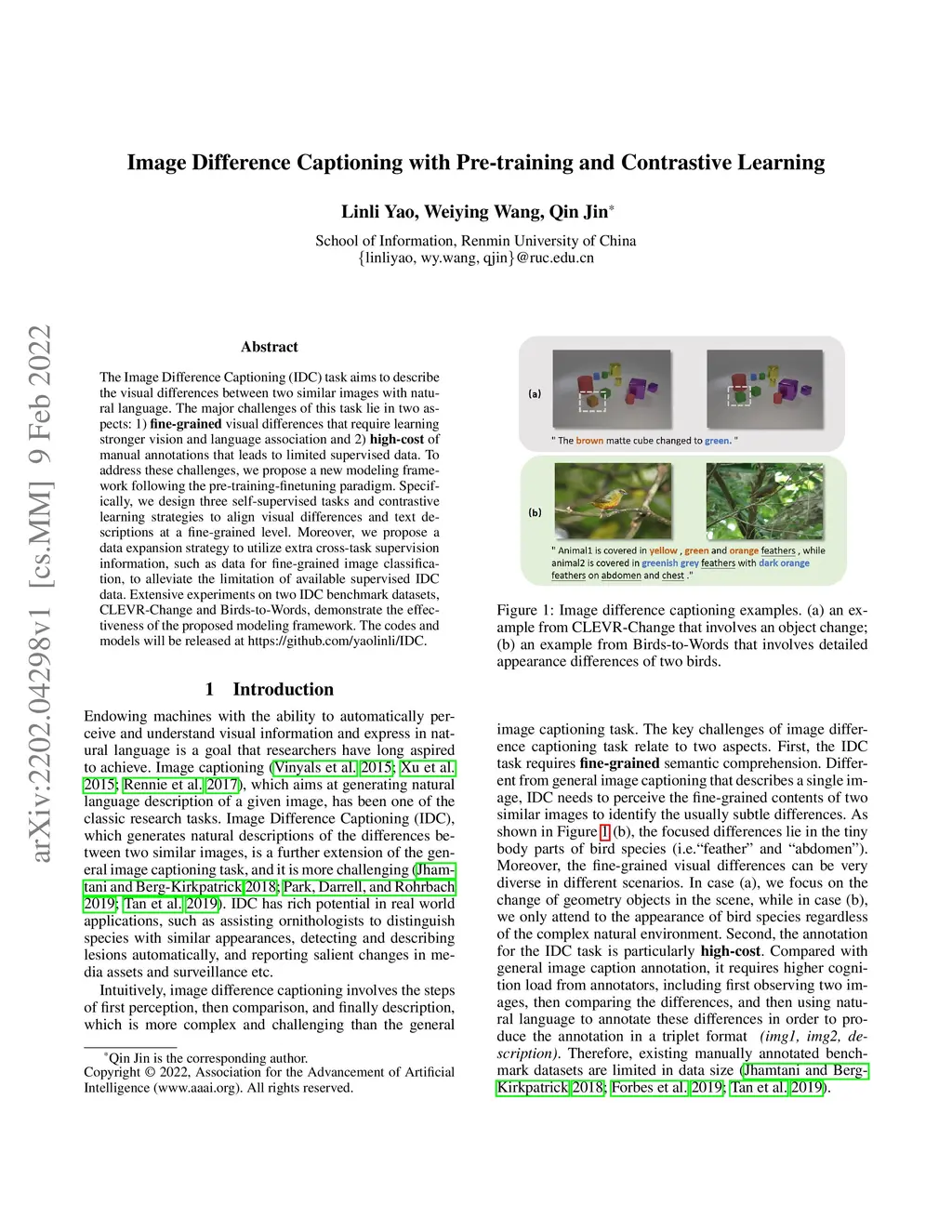 Image Difference Captioning with Pre-training and Contrastive Learning