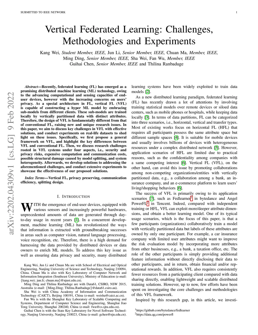 Vertical Federated Learning: Challenges, Methodologies and Experiments