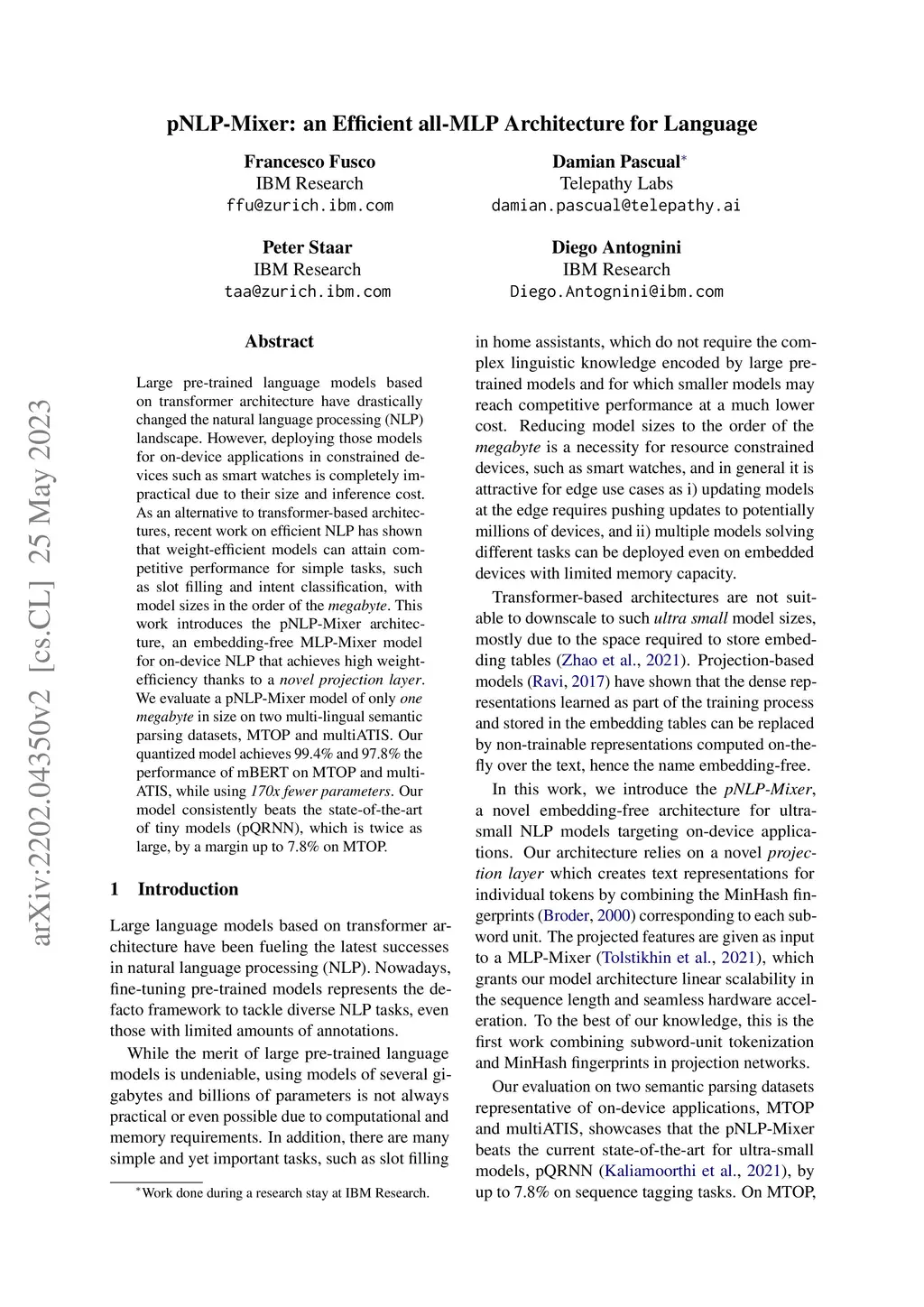 pNLP-Mixer: an Efficient all-MLP Architecture for Language
