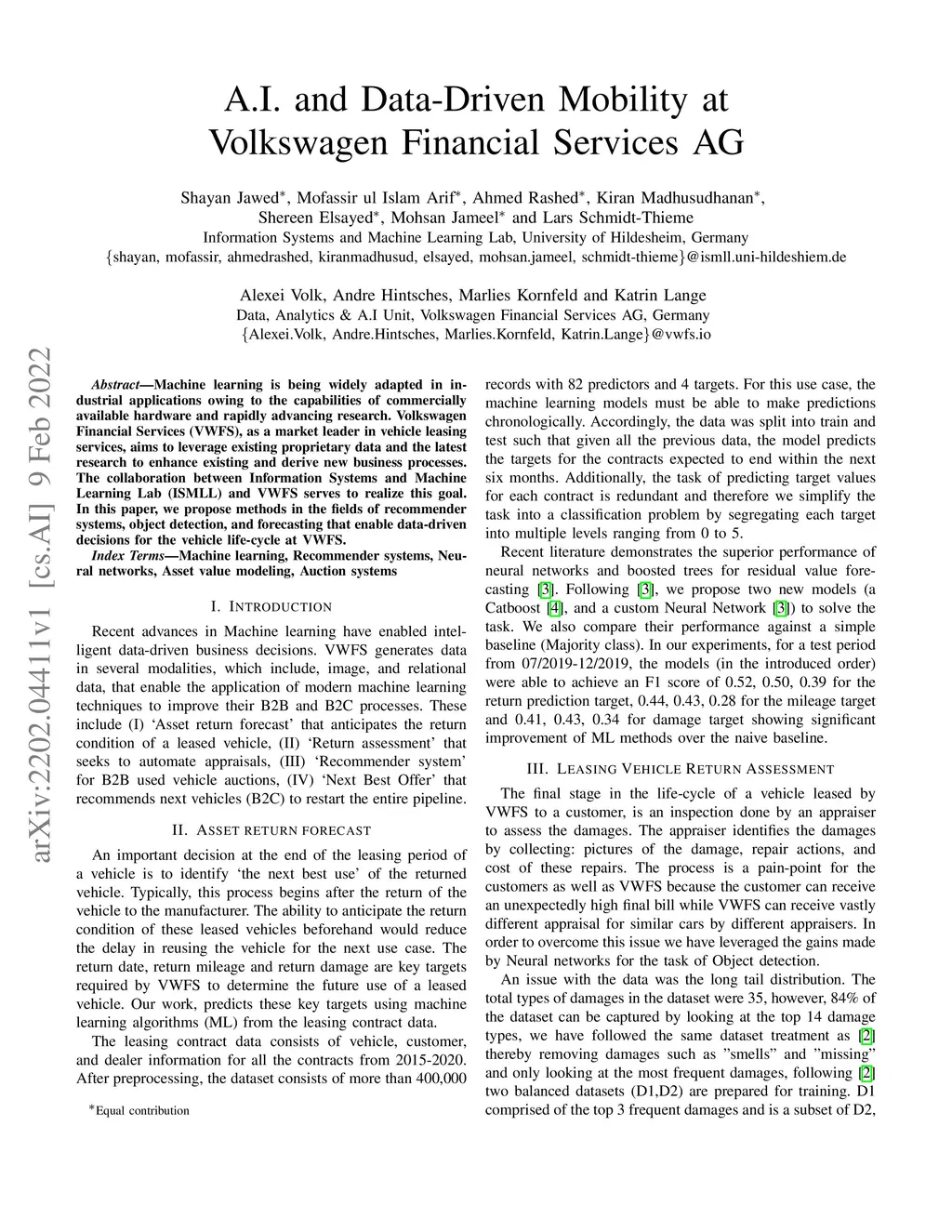 A.I. and Data-Driven Mobility at Volkswagen Financial Services AG