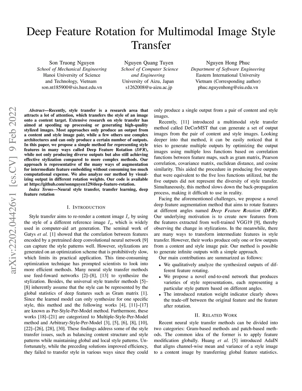 Deep Feature Rotation for Multimodal Image Style Transfer