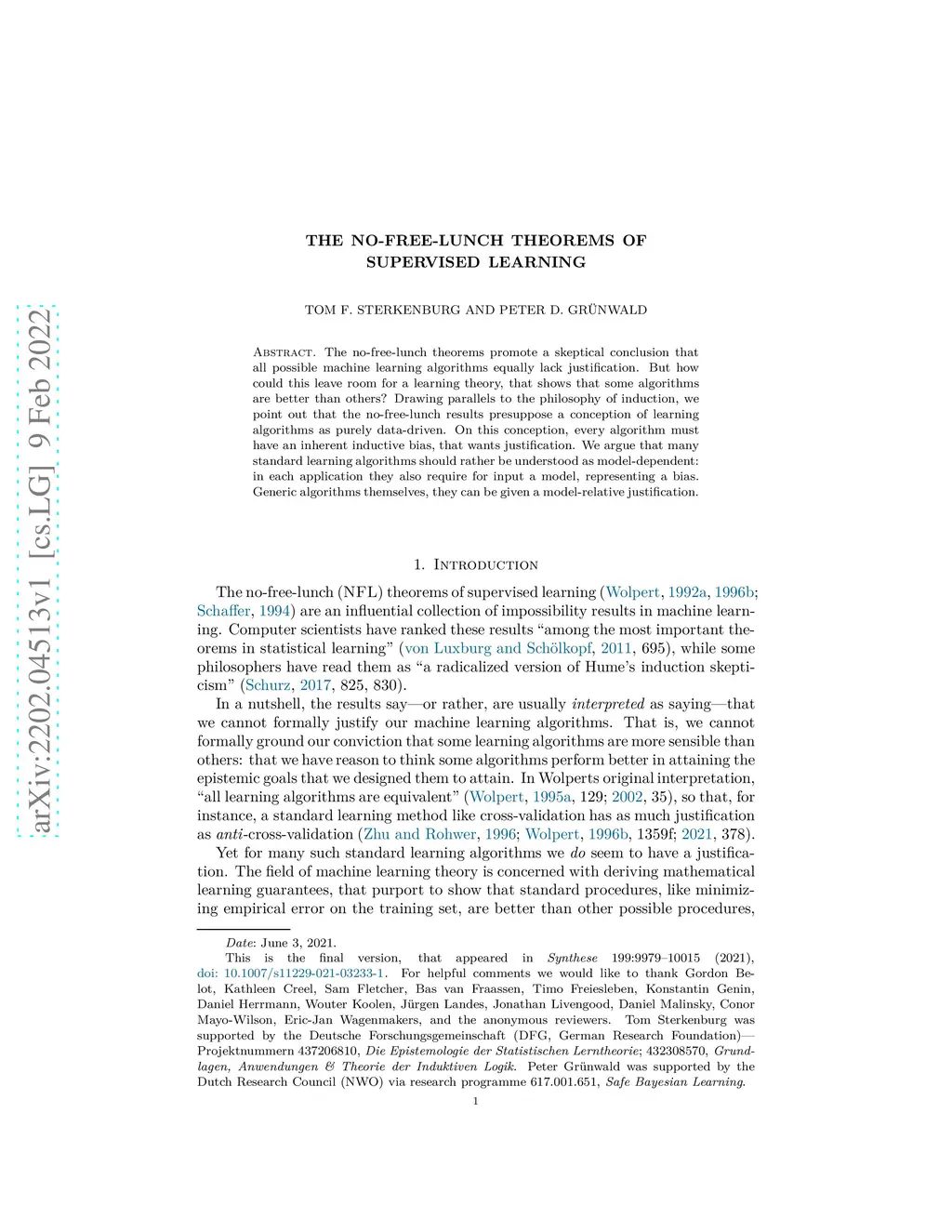 The no-free-lunch theorems promote a skeptical conclusion that all possible machine learning algorithms equally lack justification. But how could this leave room for a learning theory, that shows that some algorithms are better than others? Drawing parallels to the philosophy of induction, we point out that the no-free-lunch results presuppose a conception of learning algorithms as purely data-driven. On this conception, every algorithm must have an inherent inductive bias, that wants justification. We argue that many standard learning algorithms should rather be understood as model-dependent: in each application they also require for input a model, representing a bias. Generic algorithms themselves, they can be given a model-relative justification.