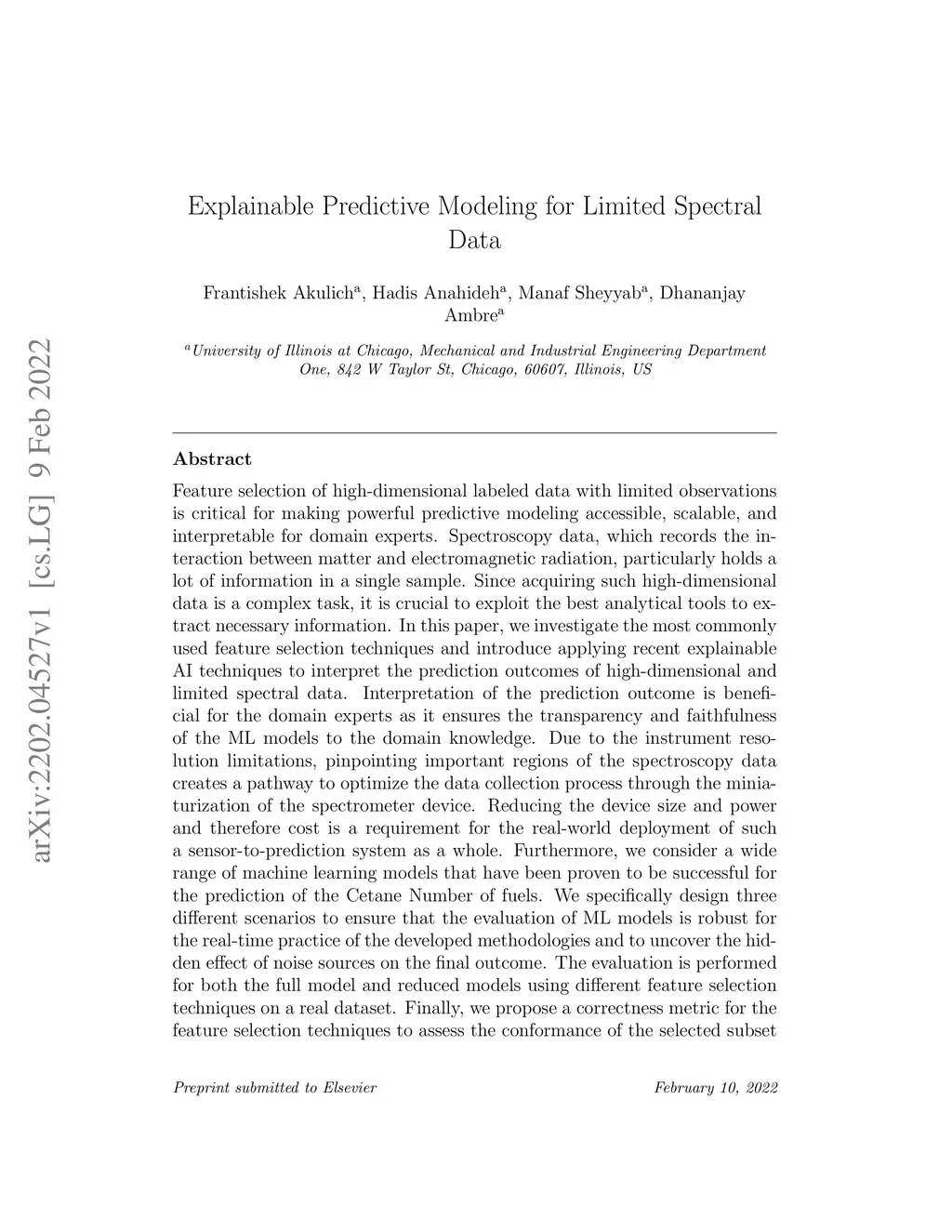 Feature selection of high-dimensional labeled data with limited observations is critical for making powerful predictive modeling accessible, scalable, and interpretable for domain experts. Spectroscopy data, which records the interaction between matter and electromagnetic radiation, particularly holds a lot of information in a single sample. Since acquiring such high-dimensional data is a complex task, it is crucial to exploit the best analytical tools to extract necessary information. In this paper, we investigate the most commonly used feature selection techniques and introduce applying recent explainable AI techniques to interpret the prediction outcomes of high-dimensional and limited spectral data. Interpretation of the prediction outcome is beneficial for the domain experts as it ensures the transparency and faithfulness of the ML models to the domain knowledge. Due to the instrument resolution limitations, pinpointing important regions of the spectroscopy data creates a pathway to optimize the data collection process through the miniaturization of the spectrometer device. Reducing the device size and power and therefore cost is a requirement for the real-world deployment of such a sensor-to-prediction system as a whole. We specifically design three different scenarios to ensure that the evaluation of ML models is robust for the real-time practice of the developed methodologies and to uncover the hidden effect of noise sources on the final outcome.