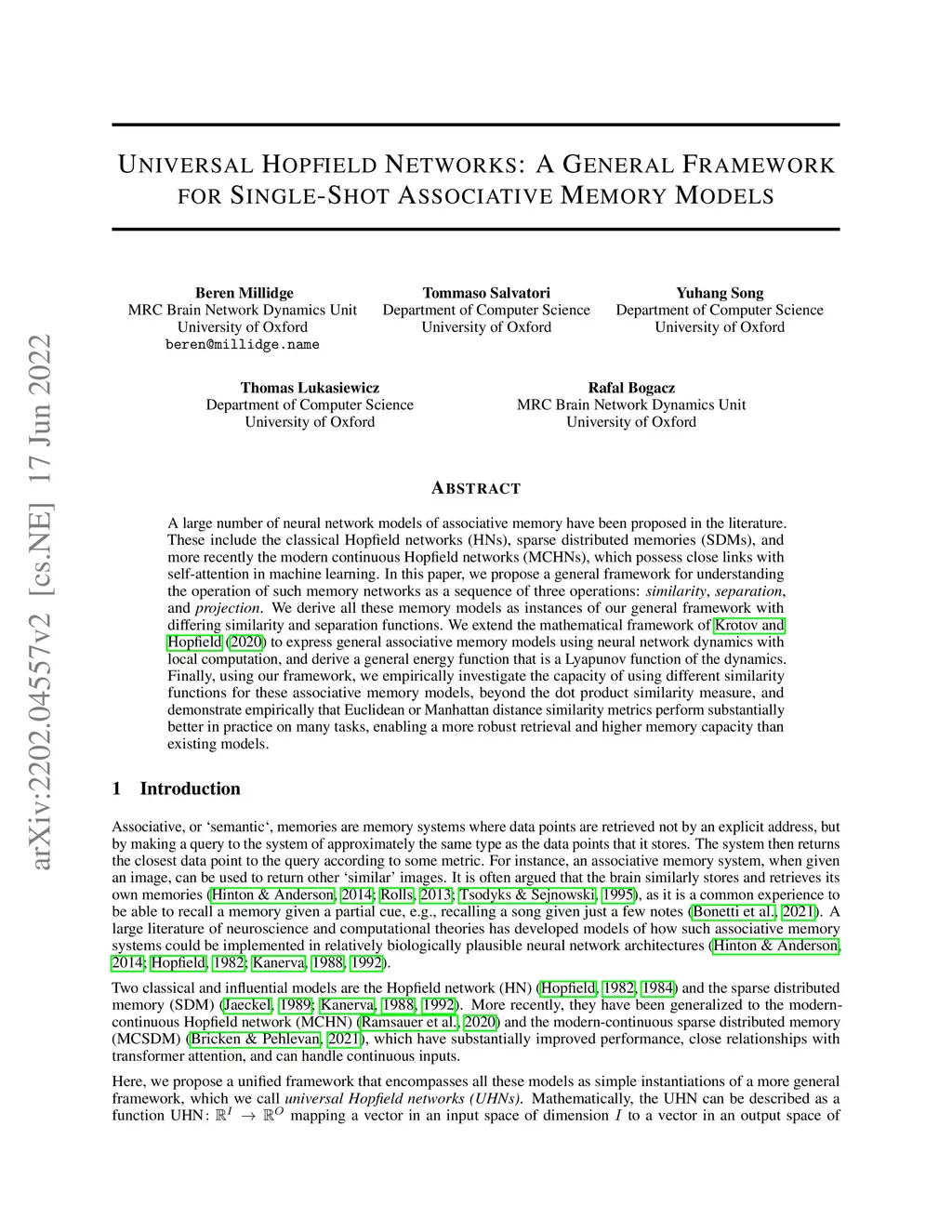 Universal Hopfield Networks: A General Framework for Single-Shot