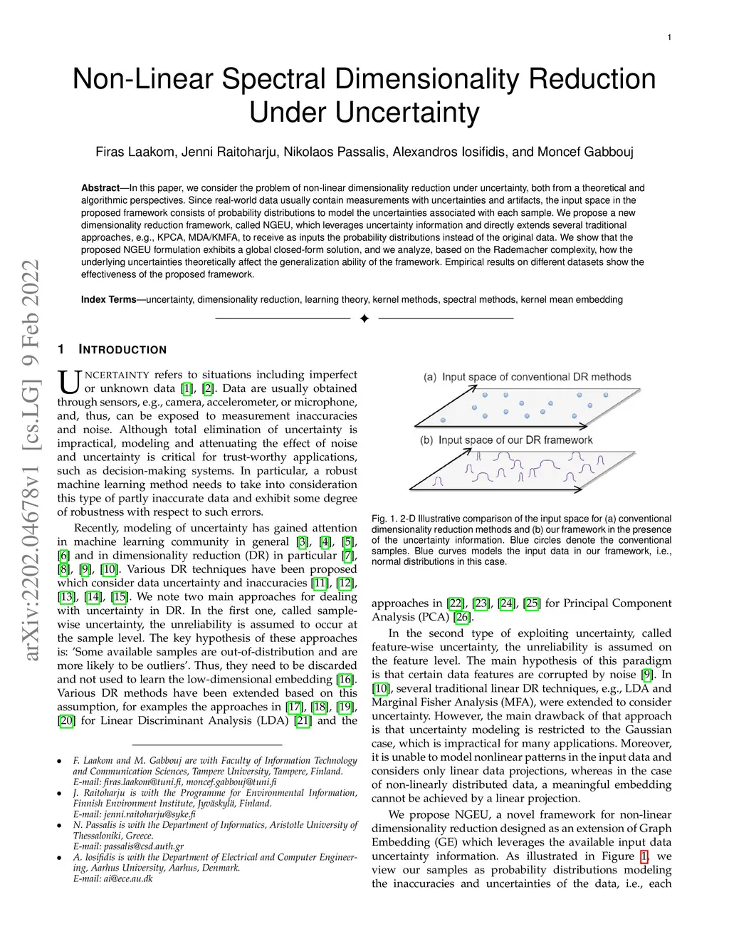 Non-Linear Spectral Dimensionality Reduction Under Uncertainty