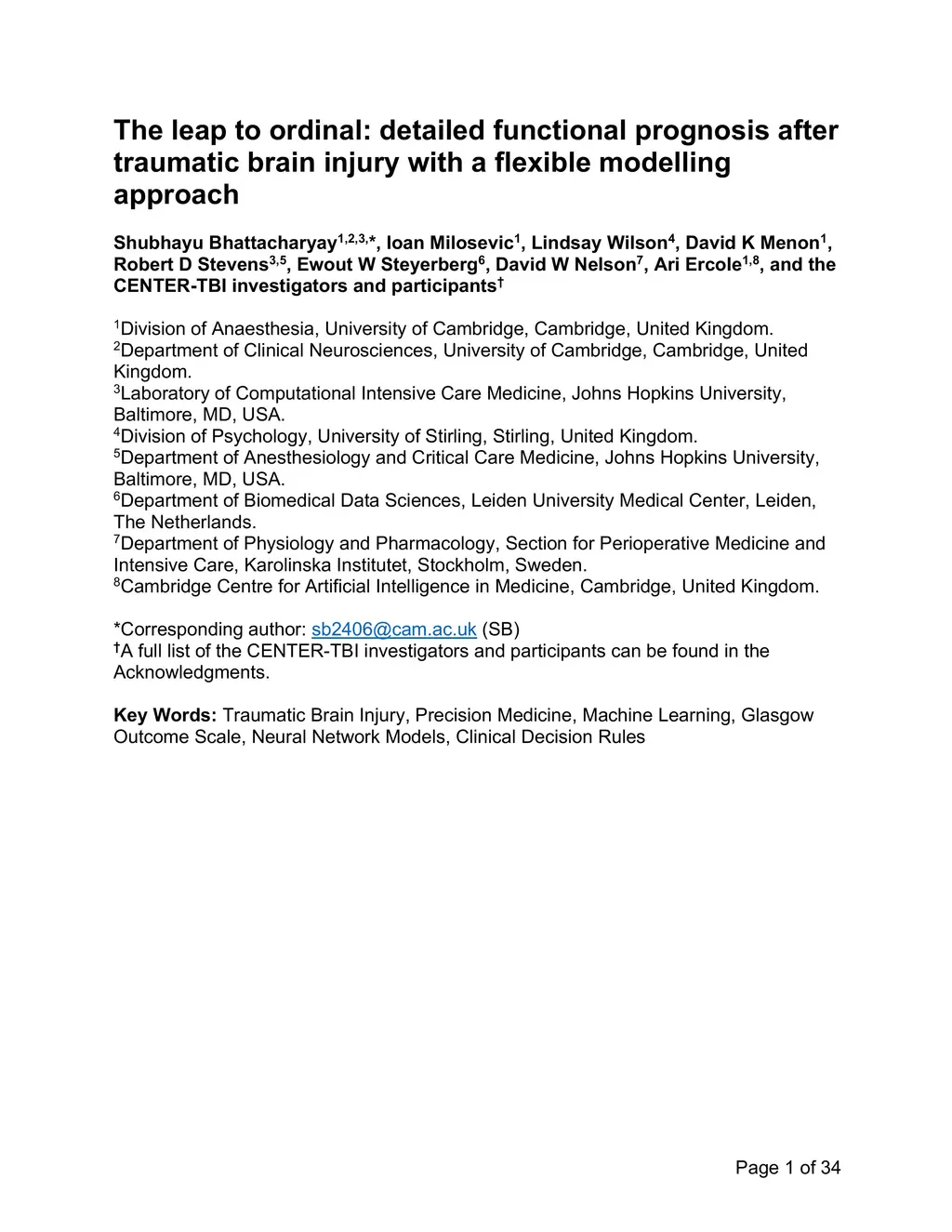The leap to ordinal: detailed functional prognosis after traumatic brain