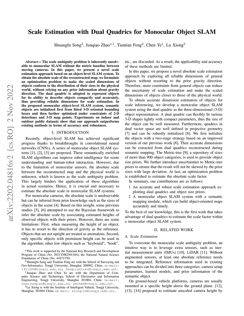 Scale Estimation with Dual Quadrics for Monocular Object SLAM