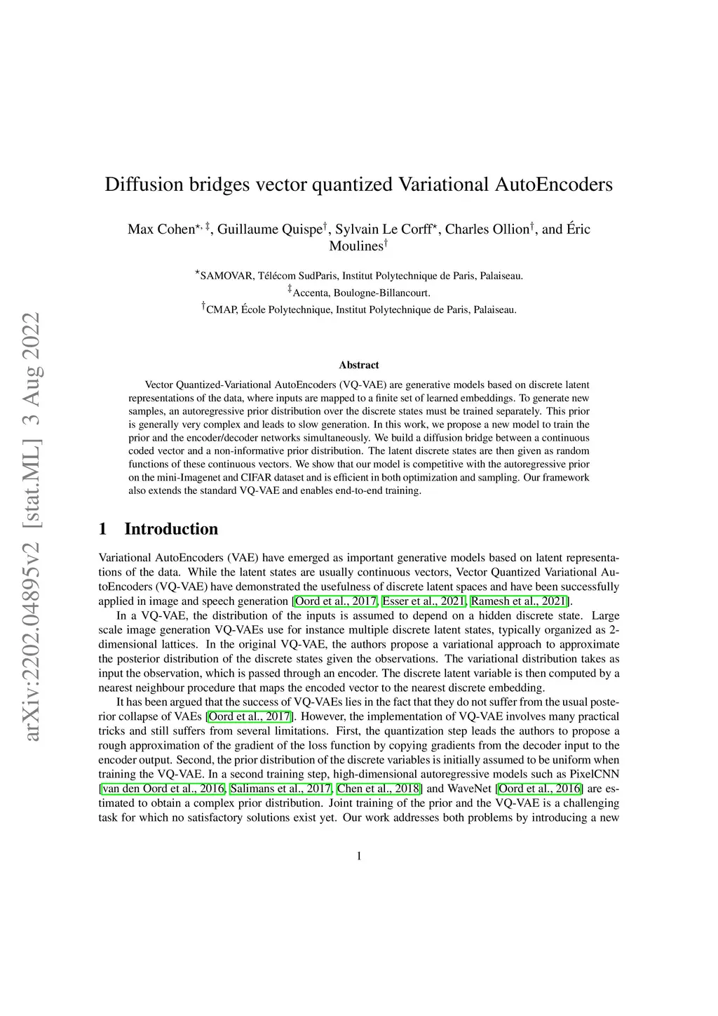 Diffusion bridges vector quantized Variational AutoEncoders