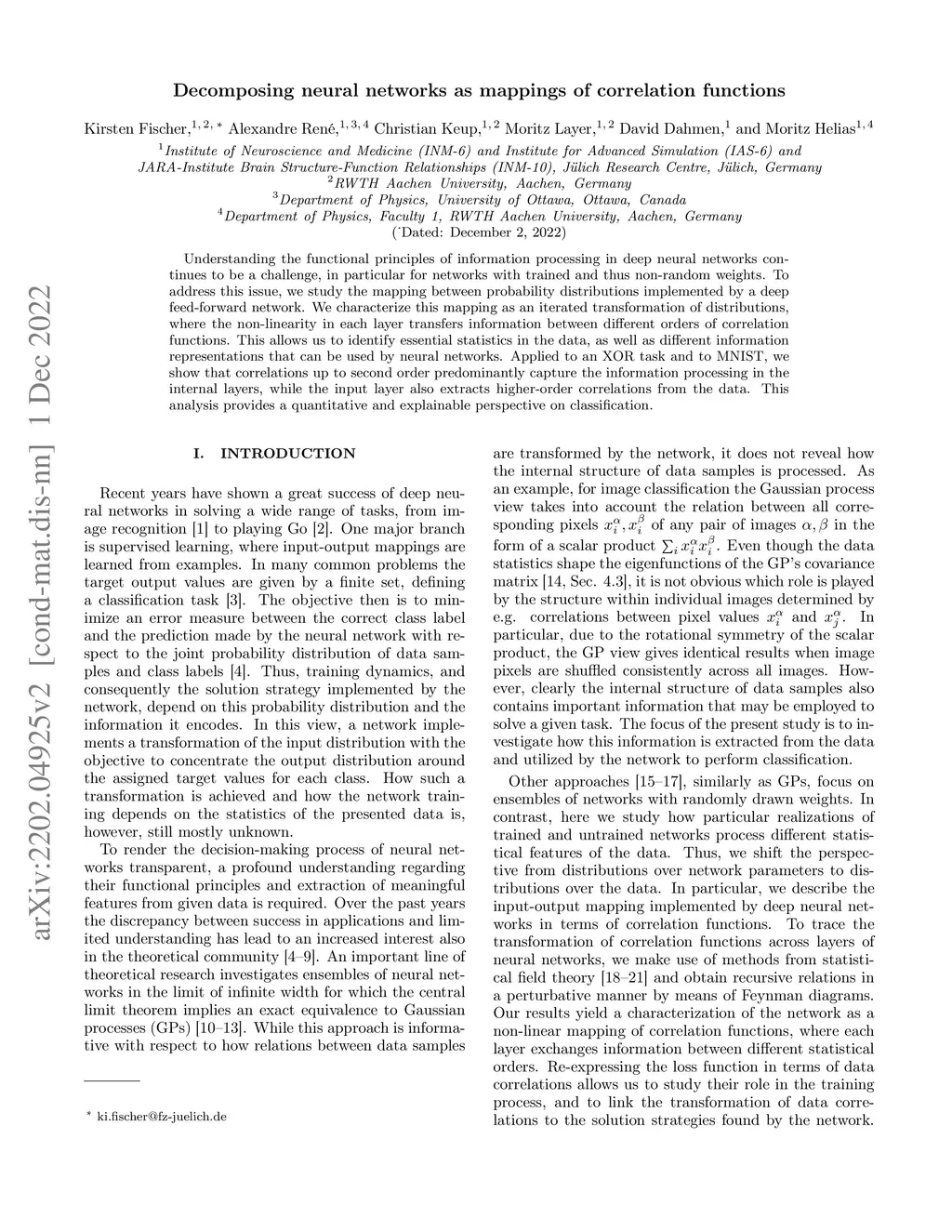 Decomposing neural networks as mappings of correlation functions