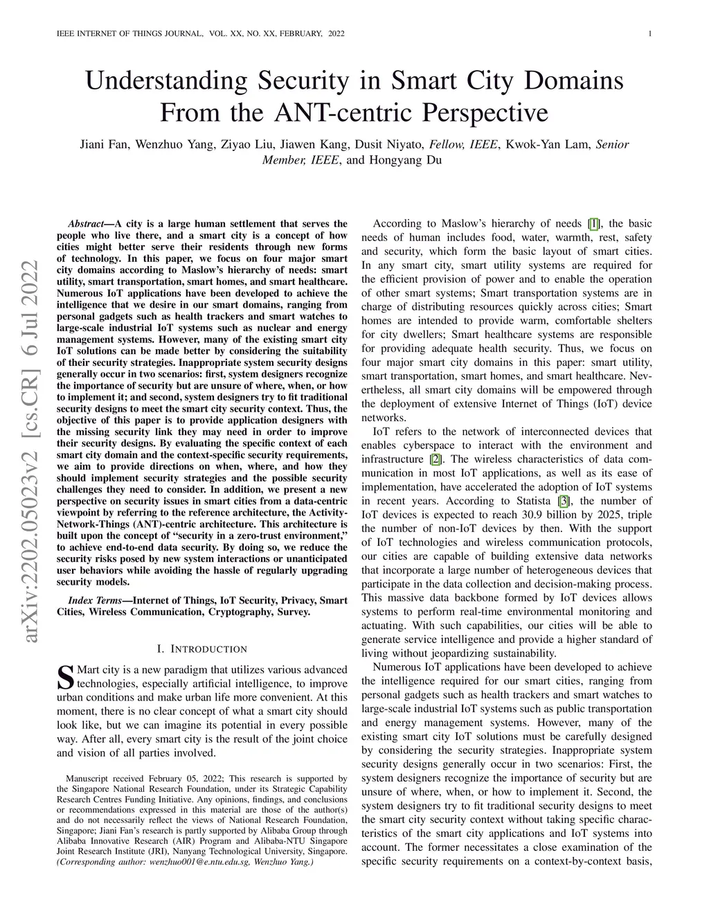 A city is a large human settlement that serves the people who live there, and a smart city is a concept of how cities might better serve their residents through new forms of technology. In this paper, we focus on four major smart city domains according to Maslow's hierarchy of needs: smart utility, smart transportation, smart homes, and smart healthcare. Numerous IoT applications have been developed to achieve the intelligence that we desire in our smart domains, ranging from personal gadgets such as health trackers and smart watches to large-scale industrial IoT systems such as nuclear and energy management systems. However, many of the existing smart city IoT solutions can be made better by considering the suitability of their security strategies. Inappropriate system security designs generally occur in two scenarios: first, system designers recognize the importance of security but are unsure of where, when, or how to implement it; and second, system designers try to fit traditional security designs to meet the smart city security context. Thus, the objective of this paper is to provide application designers with the missing security link they may need to improve their security designs. By evaluating the specific context of each smart city domain and the context-specific security requirements, we aim to provide directions on when, where, and how they should implement security strategies and the possible security challenges they need to consider. In addition, we present a new perspective on security issues in smart cities from a data-centric viewpoint by referring to the reference architecture, the Activity-Network-Things (ANT)-centric architecture, built upon the concept of "security in a zero-trust environment". By doing so, we reduce the security risks posed by new system interactions or unanticipated user behaviors while avoiding the hassle of regularly upgrading security models.