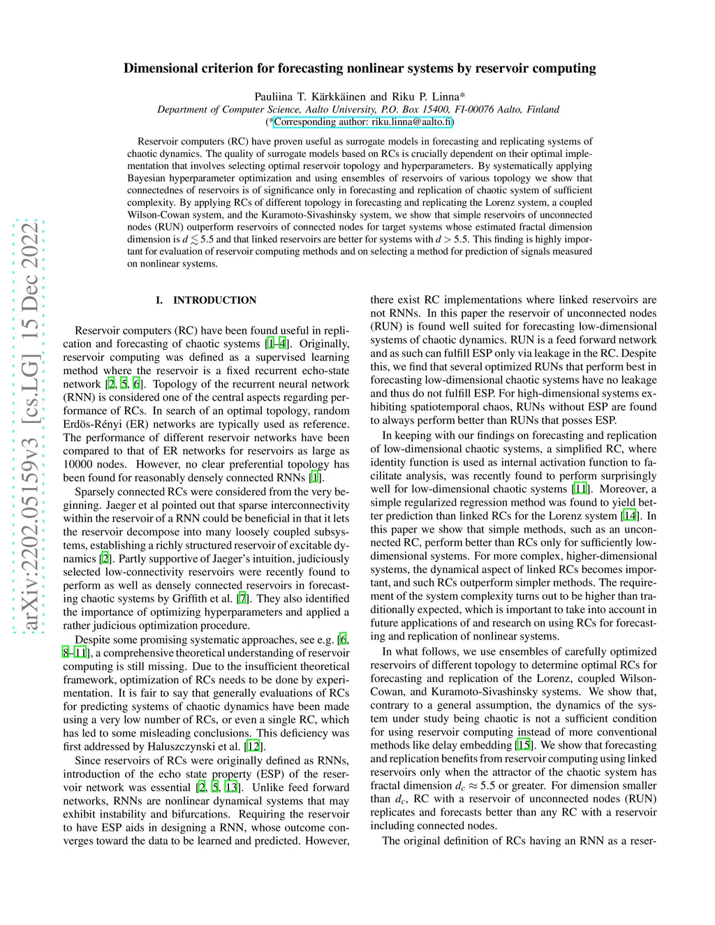 Reservoir computers (RC) have proven useful as surrogate models in forecasting and replicating systems of chaotic dynamics. The quality of surrogate models based on RCs is crucially dependent on their optimal implementation that involves selecting optimal reservoir topology and hyperparameters. By systematically applying Bayesian hyperparameter optimization and using ensembles of reservoirs of various topology we show that connectednes of reservoirs is of significance only in forecasting and replication of chaotic system of sufficient complexity. By applying RCs of different topology in forecasting and replicating the Lorenz system, a coupled Wilson-Cowan system, and the Kuramoto-Sivashinsky system, we show that simple reservoirs of unconnected nodes (RUN) outperform reservoirs of connected nodes for target systems whose estimated fractal dimension dimension is and that linked reservoirs are better for systems with . This finding is highly important for evaluation of reservoir computing methods and on selecting a method for prediction of signals measured on nonlinear systems.