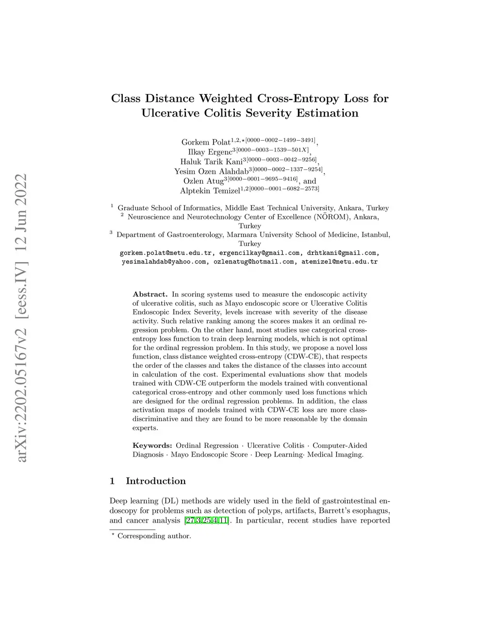 Class Distance Weighted Cross-Entropy Loss for Ulcerative Colitis