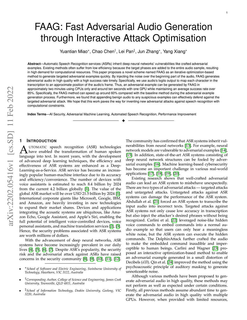 FAAG: Fast Adversarial Audio Generation through Interactive Attack