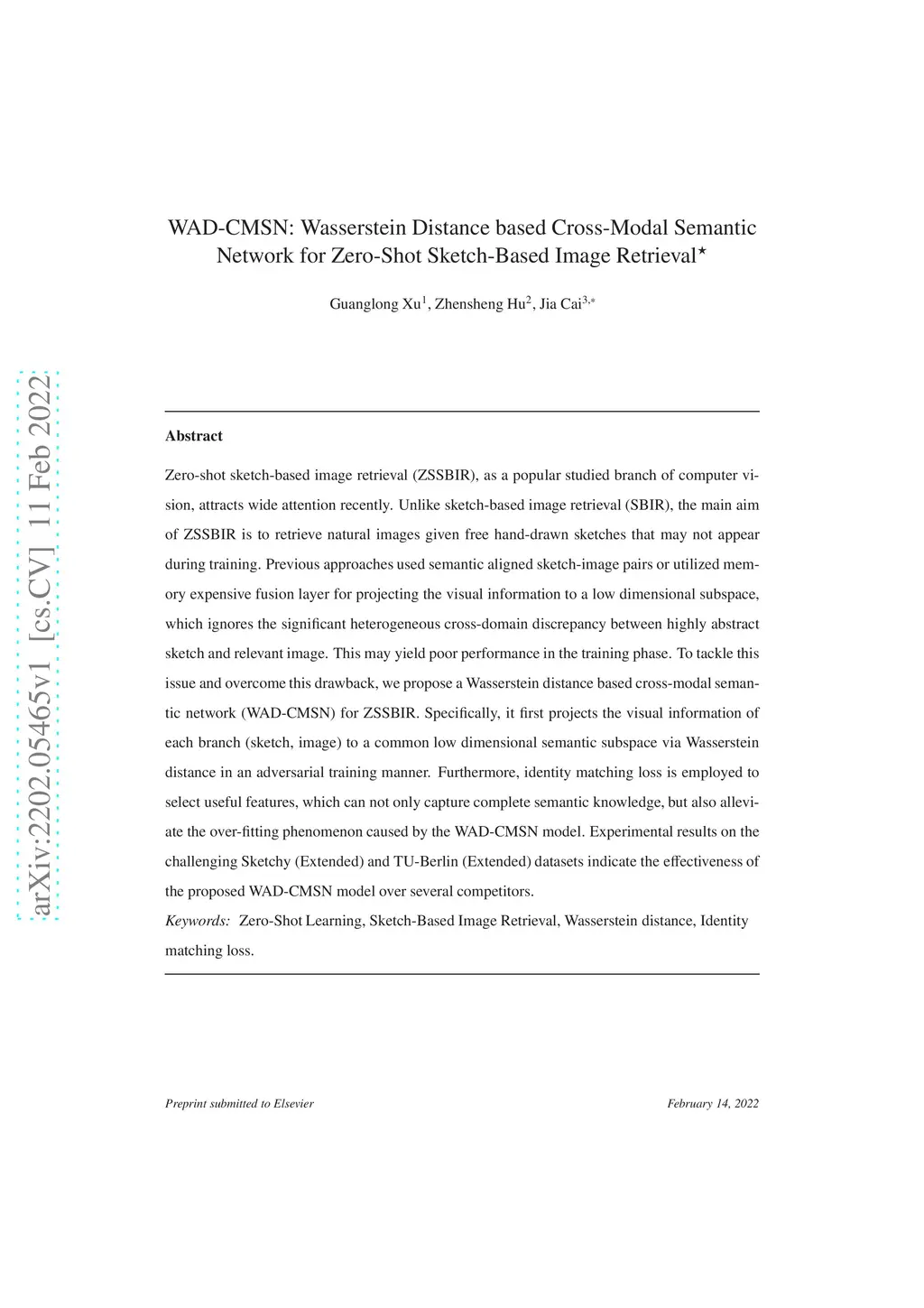 WAD-CMSN: Wasserstein Distance based Cross-Modal Semantic Network for
