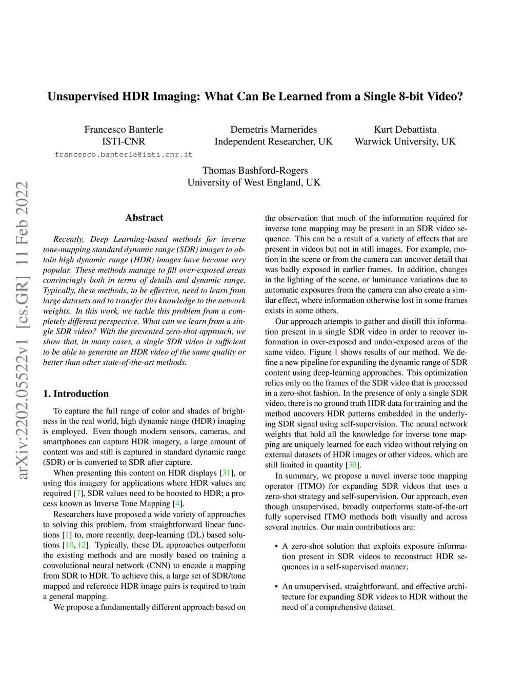 Unsupervised HDR Imaging: What Can Be Learned from a Single 8-bit Video?