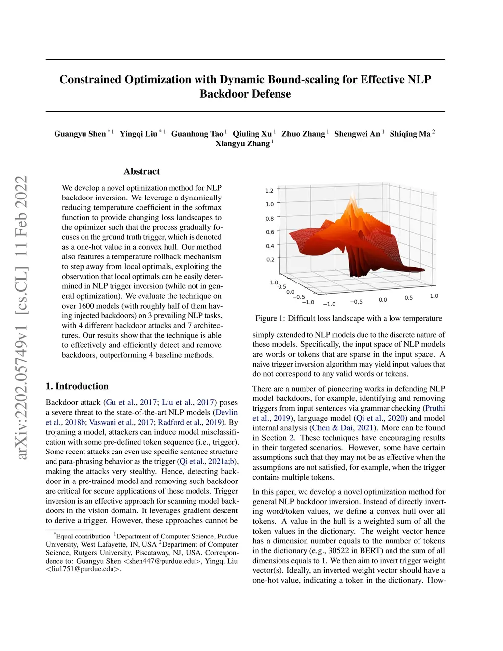 We develop a novel optimization method for NLPbackdoor inversion. We leverage a dynamically reducing temperature coefficient in the softmax function to provide changing loss landscapes to the optimizer such that the process gradually focuses on the ground truth trigger, which is denoted as a one-hot value in a convex hull. Our method also features a temperature rollback mechanism to step away from local optimals, exploiting the observation that local optimals can be easily deter-mined in NLP trigger inversion (while not in general optimization). We evaluate the technique on over 1600 models (with roughly half of them having injected backdoors) on 3 prevailing NLP tasks, with 4 different backdoor attacks and 7 architectures. Our results show that the technique is able to effectively and efficiently detect and remove backdoors, outperforming 4 baseline methods.