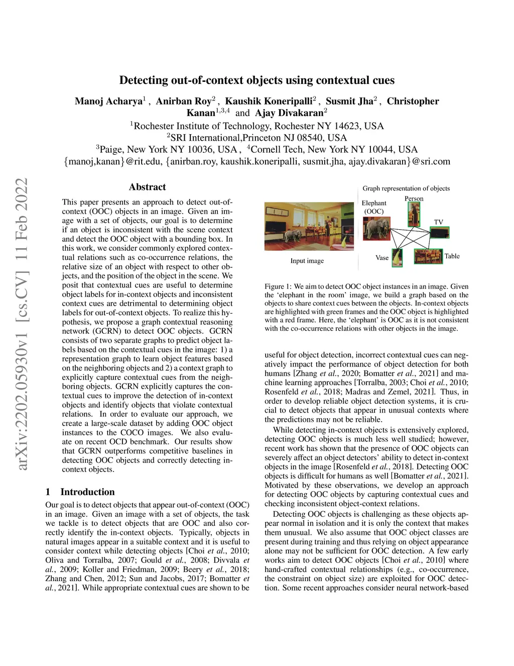 This paper presents an approach to detect out-of-context (OOC) objects in an image. Given an image with a set of objects, our goal is to determine if an object is inconsistent with the scene context and detect the OOC object with a bounding box. In this work, we consider commonly explored contextual relations such as co-occurrence relations, the relative size of an object with respect to other objects, and the position of the object in the scene. We posit that contextual cues are useful to determine object labels for in-context objects and inconsistent context cues are detrimental to determining object labels for out-of-context objects. To realize this hypothesis, we propose a graph contextual reasoning network (GCRN) to detect OOC objects. GCRN consists of two separate graphs to predict object labels based on the contextual cues in the image: 1) a representation graph to learn object features based on the neighboring objects and 2) a context graph to explicitly capture contextual cues from the neighboring objects. GCRN explicitly captures the contextual cues to improve the detection of in-context objects and identify objects that violate contextual relations. In order to evaluate our approach, we create a large-scale dataset by adding OOC object instances to the COCO images. We also evaluate on recent OCD benchmark. Our results show that GCRN outperforms competitive baselines in detecting OOC objects and correctly detecting in-context objects.