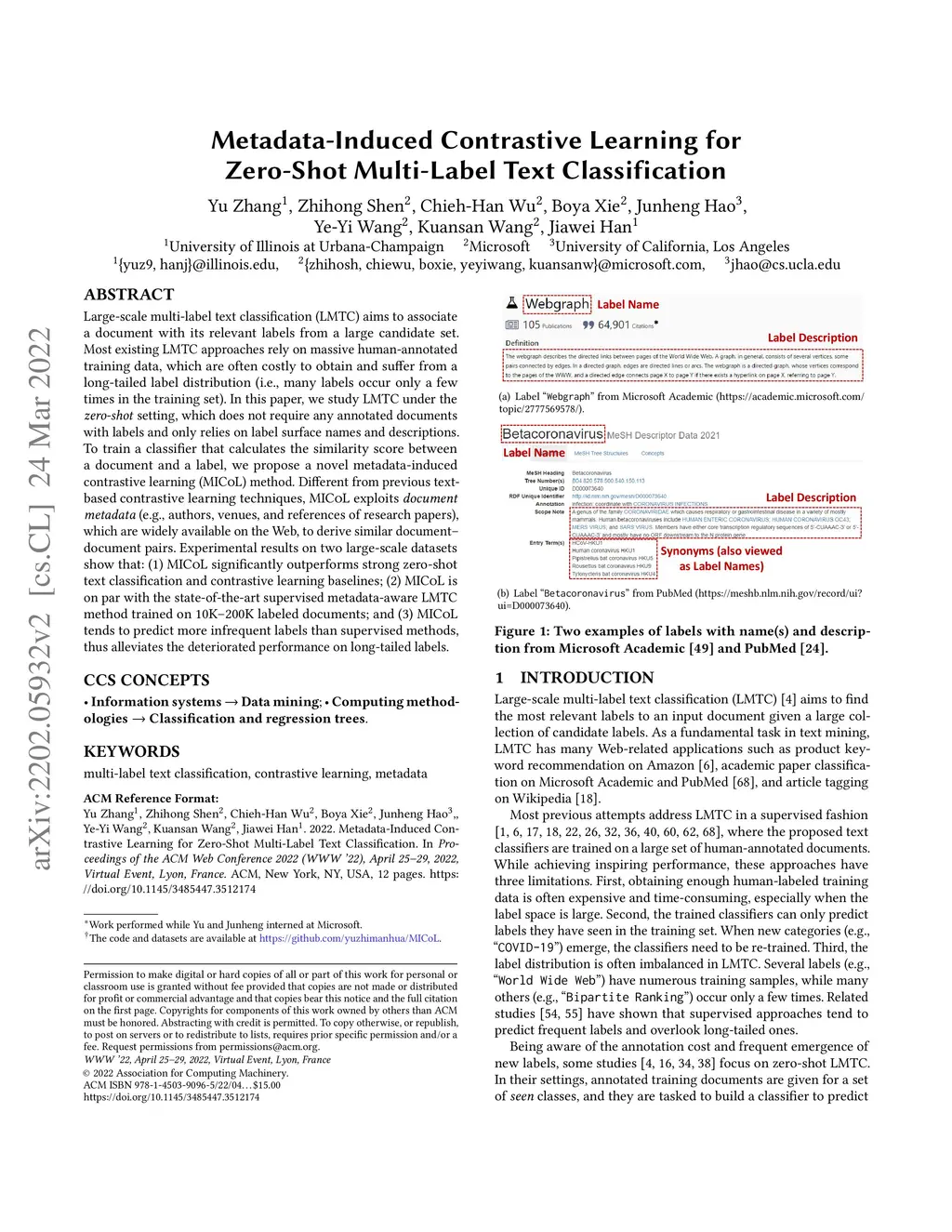 Metadata-Induced Contrastive Learning for Zero-Shot Multi-Label Text