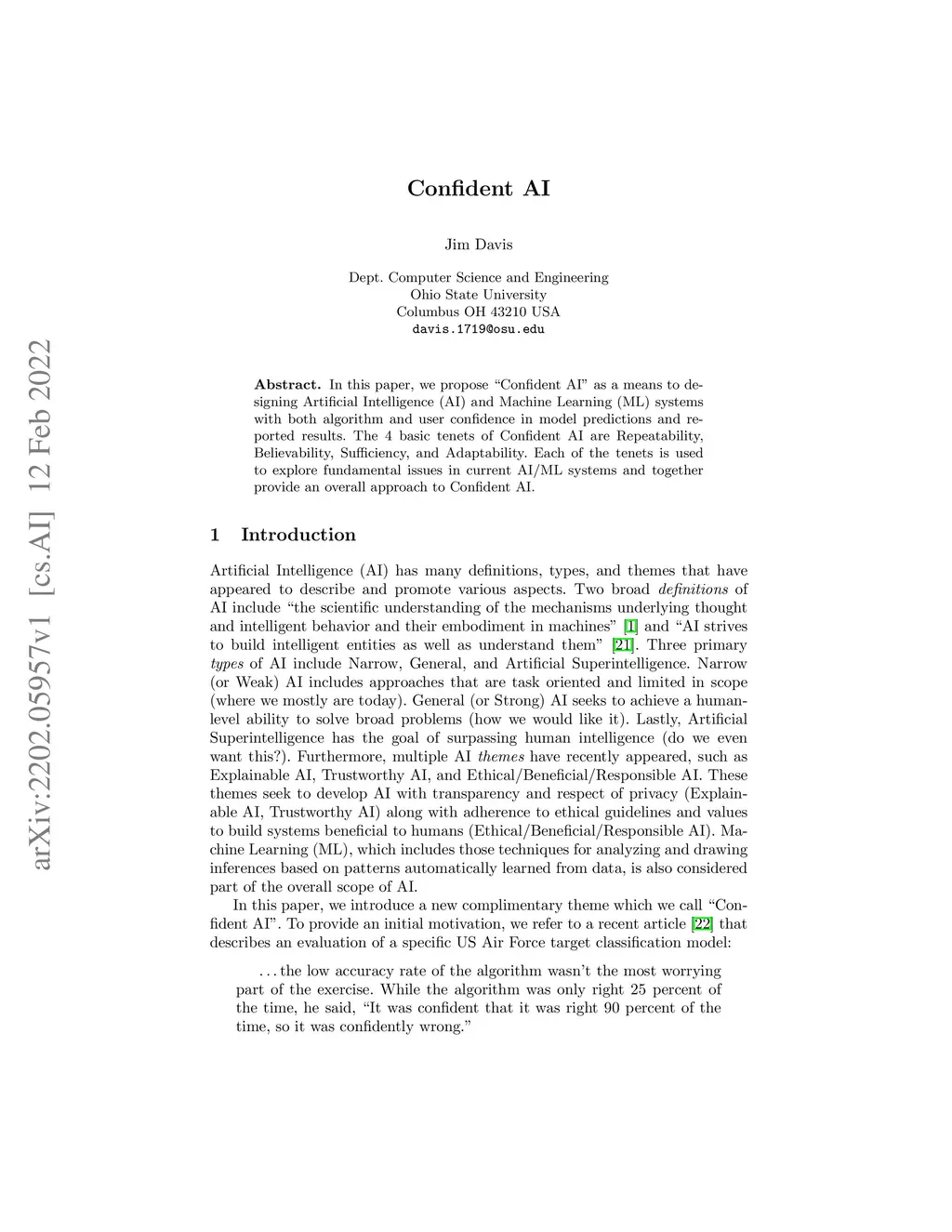 In this paper, we propose "Confident AI" as a means to designing Artificial Intelligence (AI) and Machine Learning (ML) systems with both algorithm and user confidence in model predictions and reported results. The 4 basic tenets of Confident AI are Repeatability, Believability, Sufficiency, and Adaptability. Each of the tenets is used to explore fundamental issues in current AI/ML systems and together provide an overall approach to Confident AI.